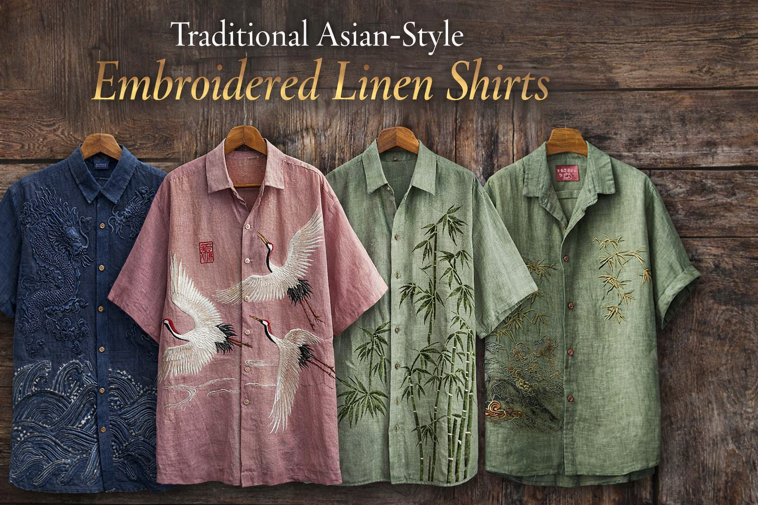 Men’s Bamboo Embroidered Linen Shirt – Japanese Style Casual Summer Designer Shirt